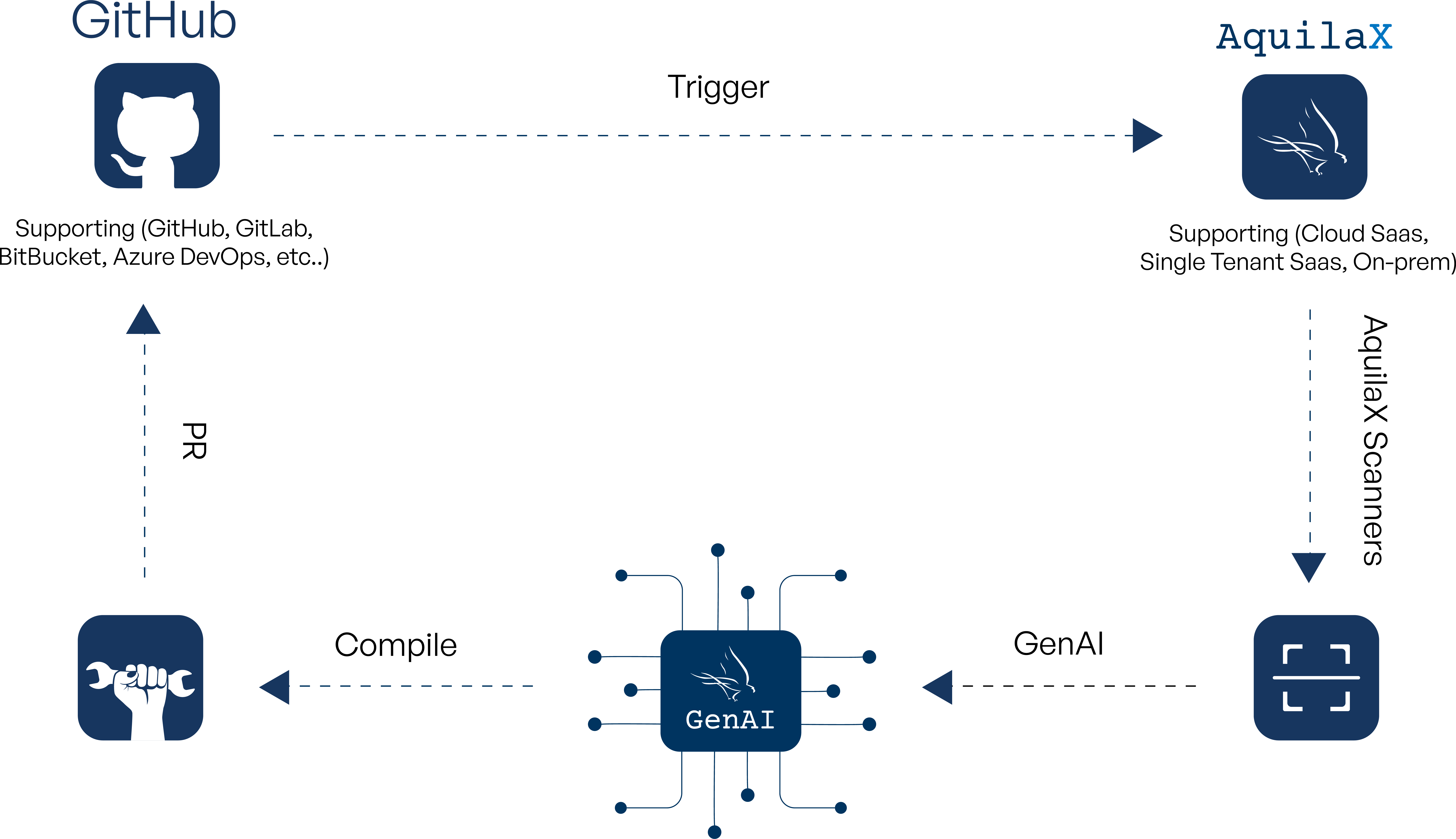 <figure><img src="https://53914109-files.gitbook.io/~/files/v0/b/gitbook-x-prod.appspot.com/o/spaces%2FjAmSnvnfbHl4EDK56iDo%2Fuploads%2Fgit-blob-b53702ebde9f299bc33ca1eb70ea5172a2bf365f%2FAsset%2012%404x%20(3).png?alt=media" alt=""><figcaption><p>AquilaX - Secure SDLC Full Flow</p></figcaption></figure>