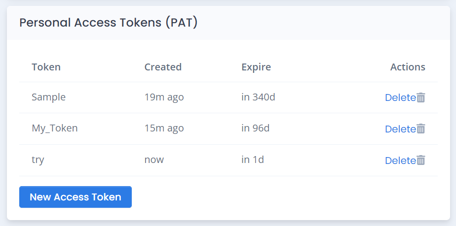 1. Under the personal profile section Click **"New Access Token" Button**: Find and click the `New Access Token` button to initiate the token creation process. This button is typically located in the Personal Access Tokens section.