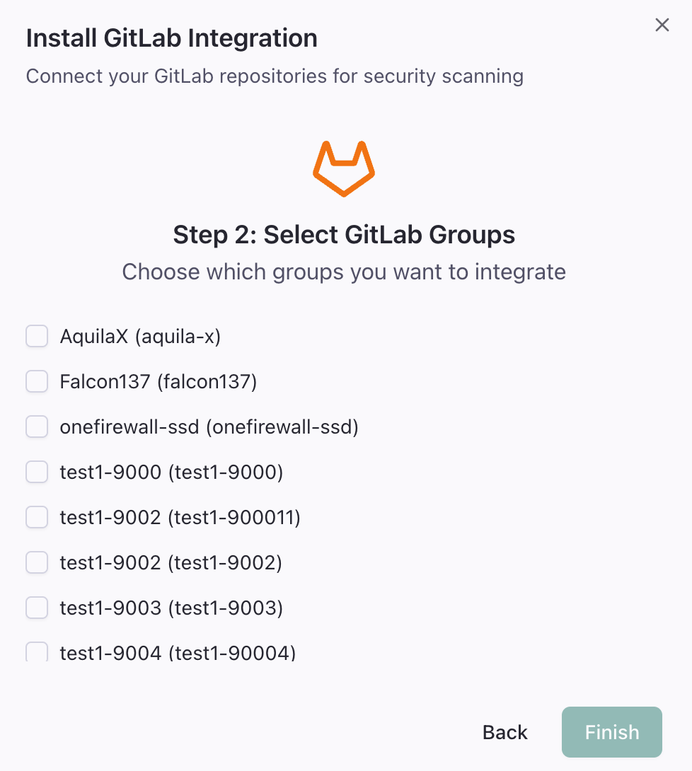 7. Click **Next** and select the **GitLab groups** you want to grant access to