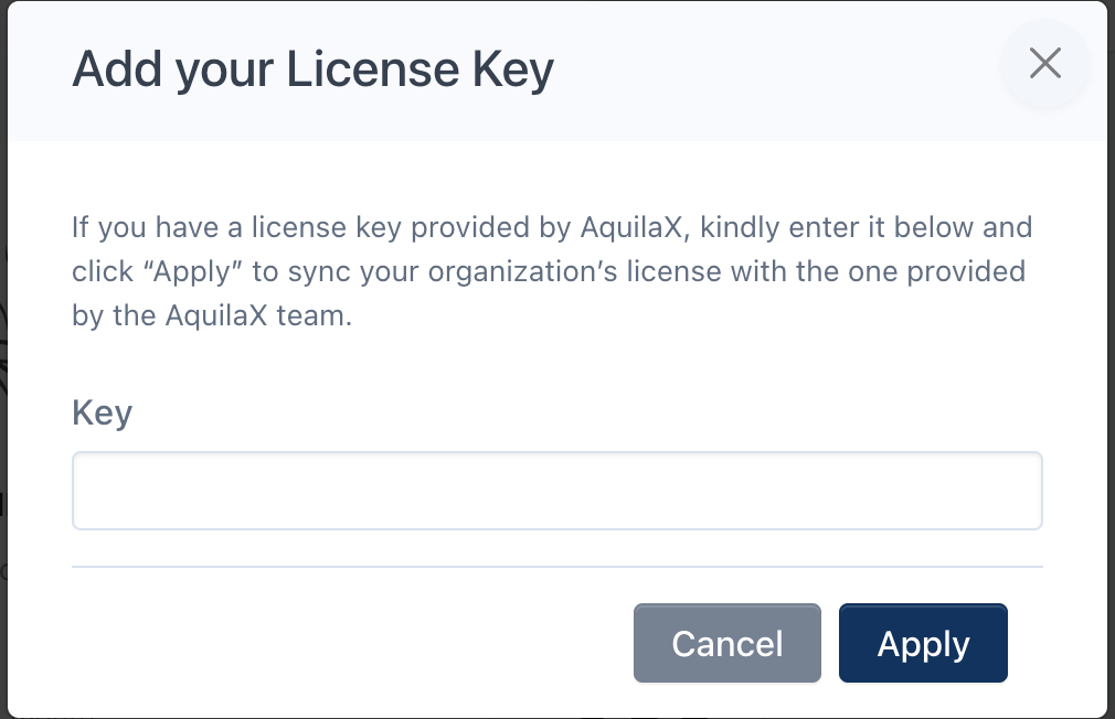 Once you are inside the application, create a personal access token, you will need this for the worker. In addition go into the settings of your new organization and apply a license key, the license key will be provided to you by the the AquilaX team.